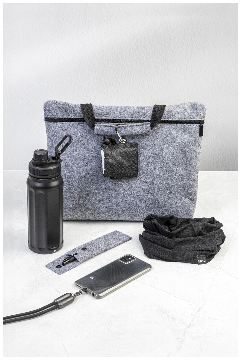 Šňůrka na mobilní telefon z RPET s vložkou pro telefon a integrovaným nabíjecím kabelem USB-C/USB-C se skrytými kovovými konektory. Podpora rychlého nabíjení a přenosu dat PD s výkonem 60 W.