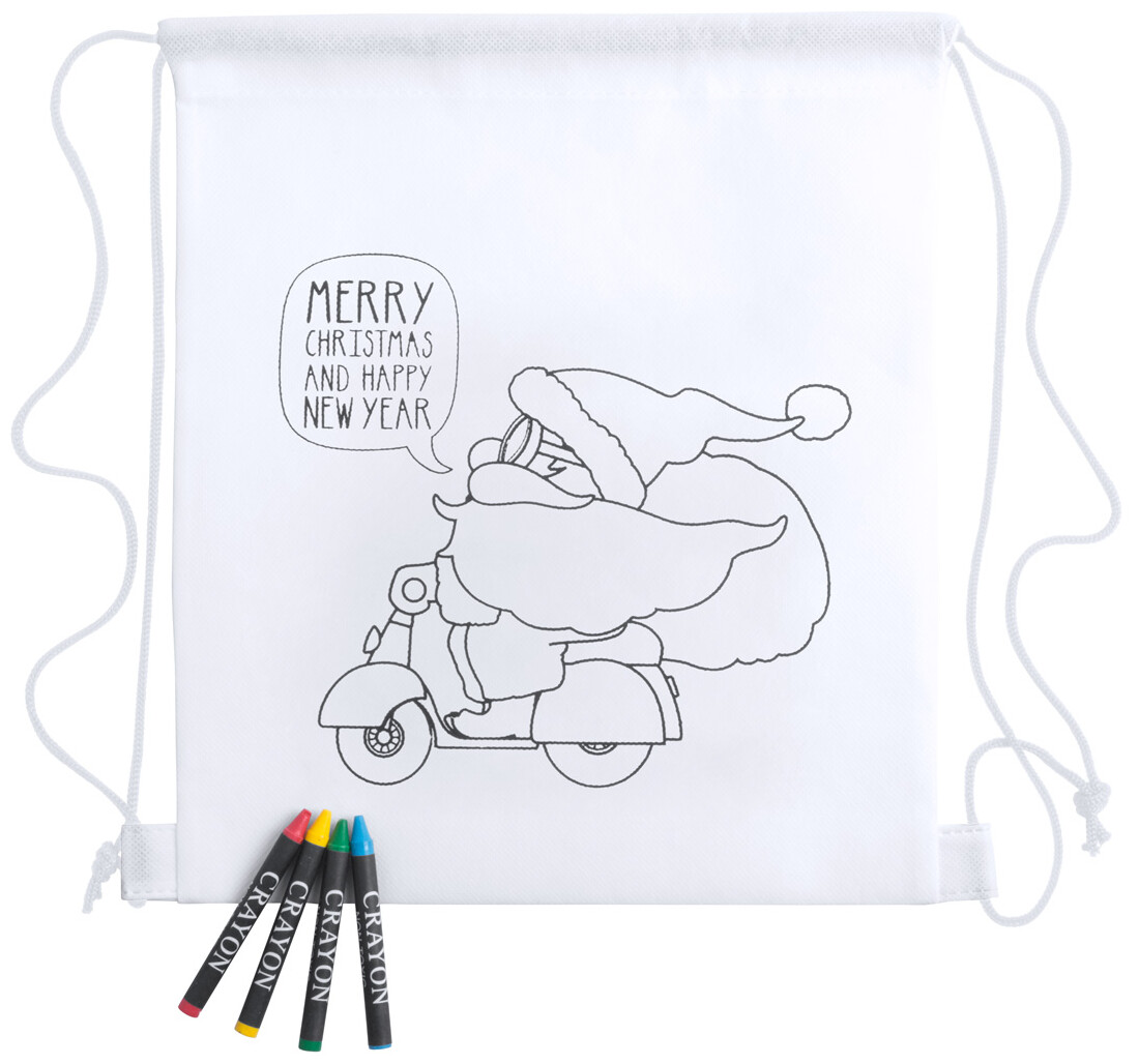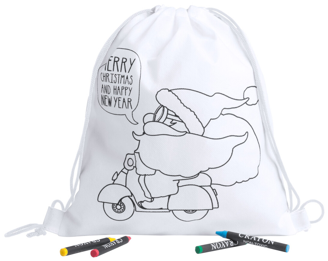 Vak na stažení z netkané textilie na vybarvení s vánočním motivem a 4 voskovkami.