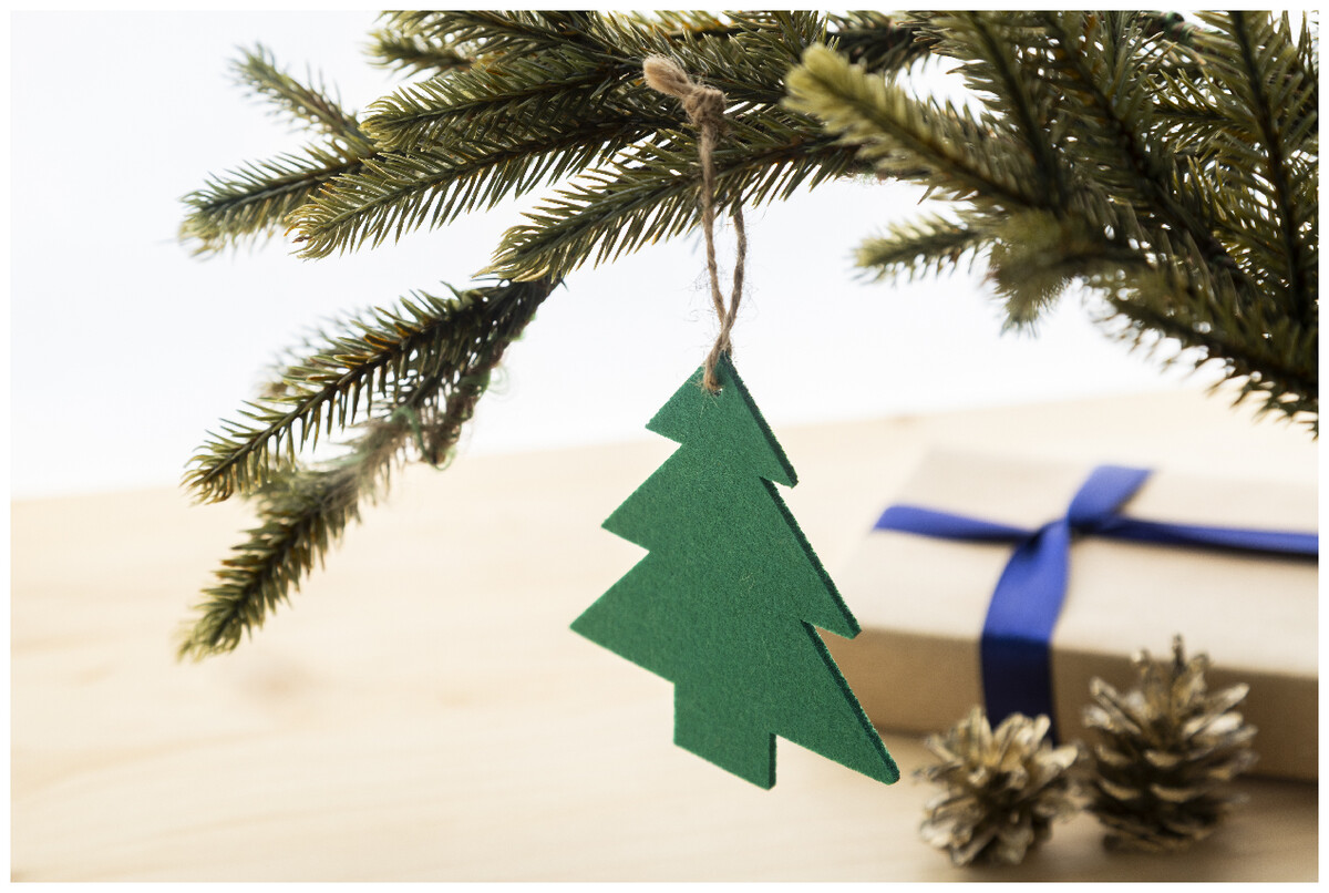 Vánoční ozdoba na stromeček z RPET plsti s jutovou šňůrkou.