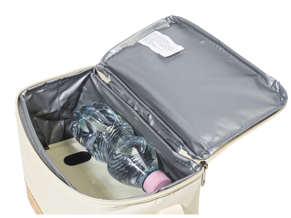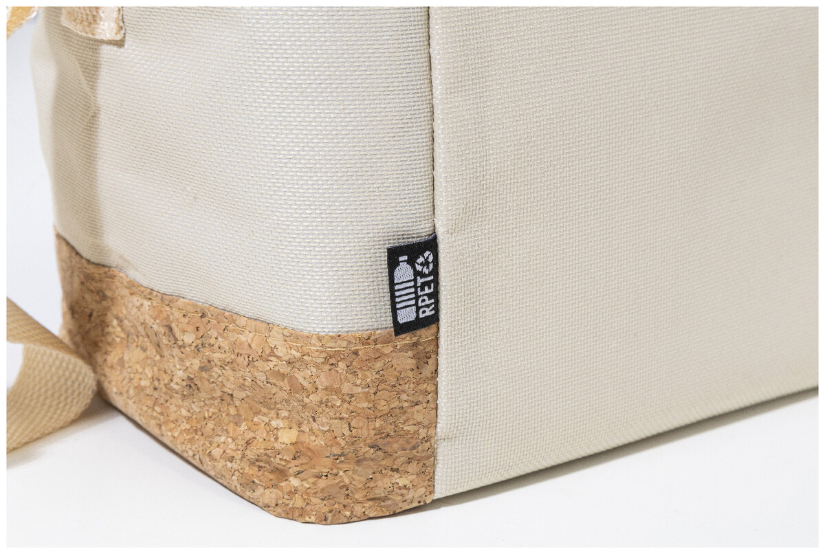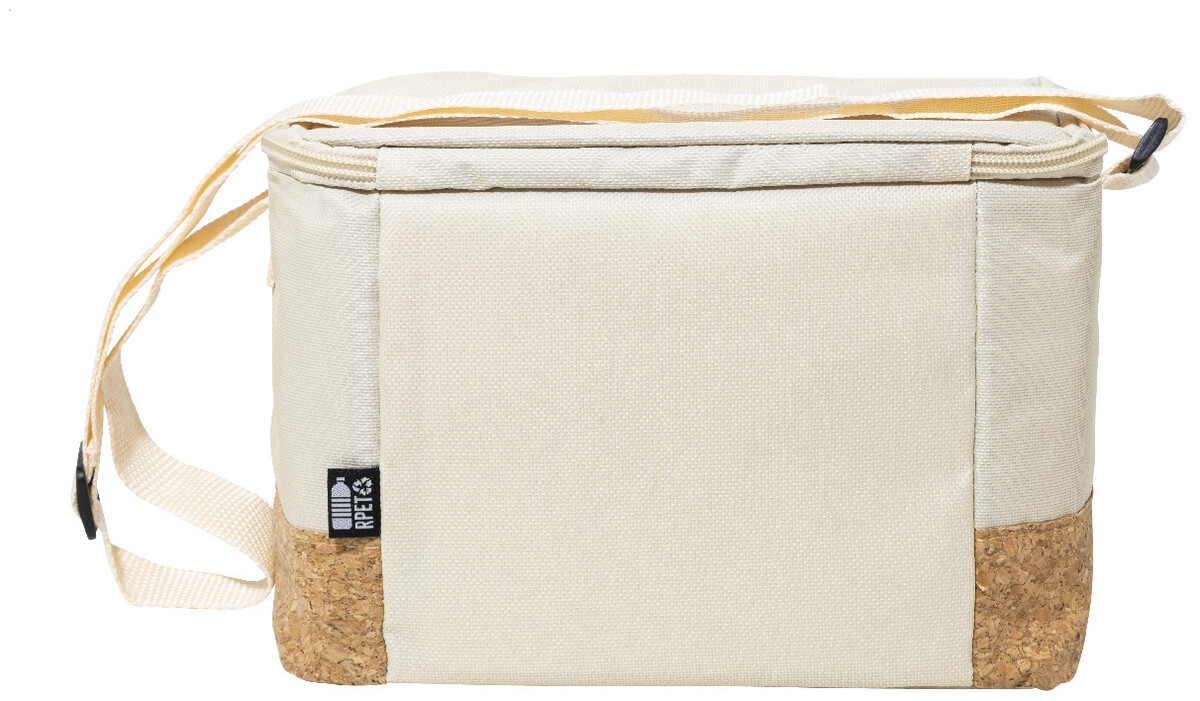 Chladicí taška na zip z 600D RPET polyesteru s přírodní korkovou základnou, PEVA polstrováním a nastavitelným ramenním popruhem. S výrazným štítkem RPET.