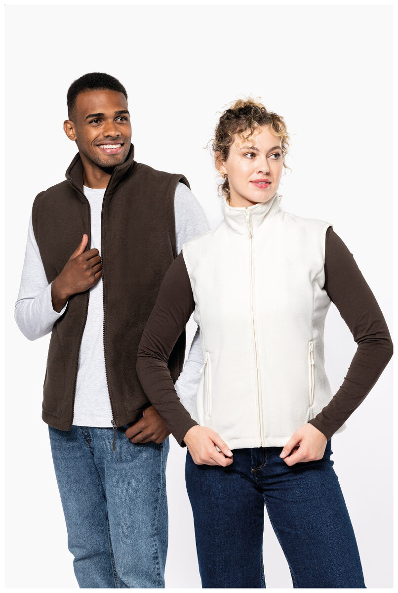 Mikropolární fleecová vesta na zip s bočními kapsami a úpravou proti žmolkování. Materiál: 100% polyester, 300 g/m2. Výrobek značky Kariban.
