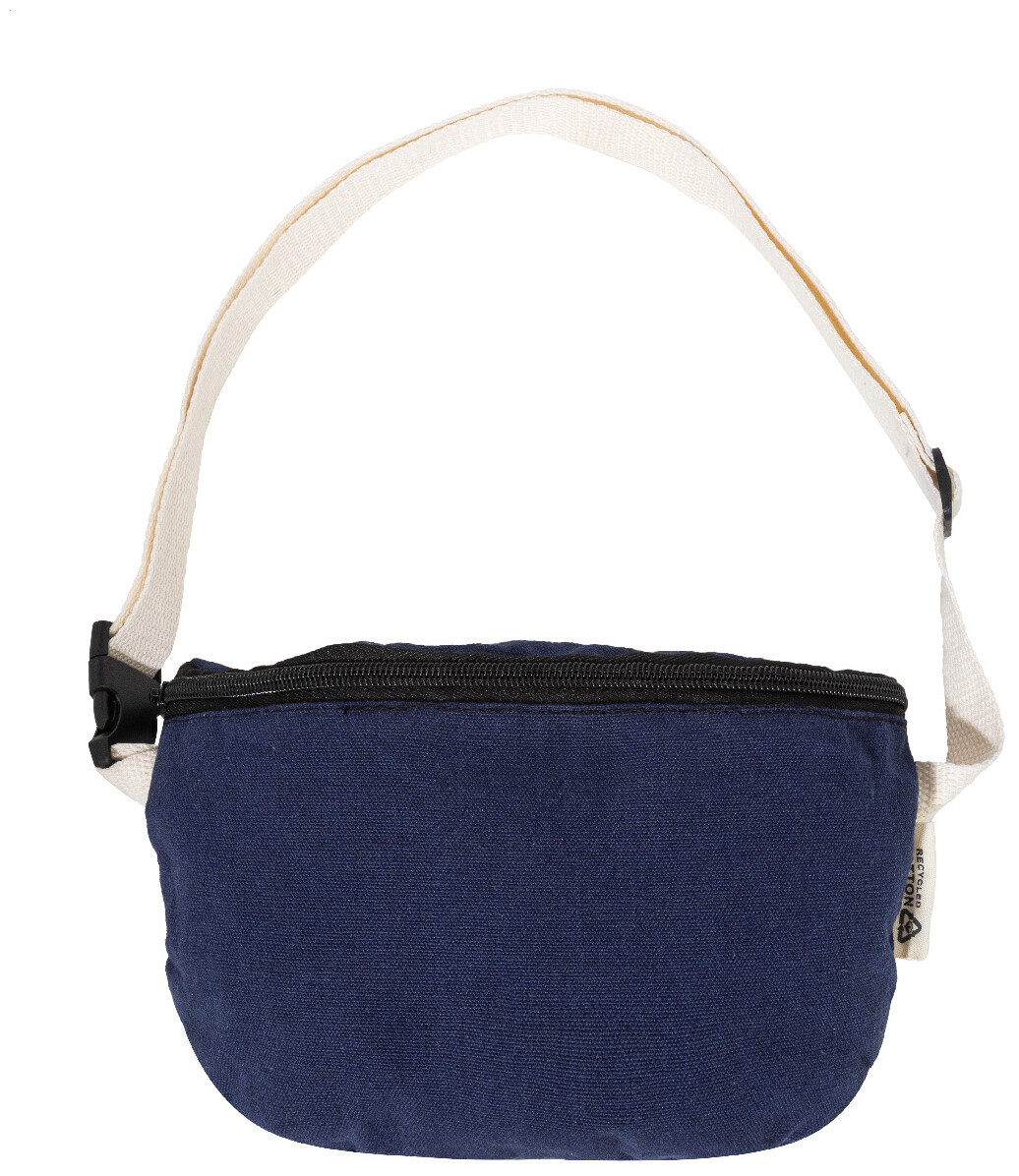 Ledvinka z recyklovaného plátna s přihrádkou na zip a nastavitelným popruhem. 70 % recyklované bavlny a 30 % recyklovaného polyesteru. S výraznou etiketou z recyklované bavlny.