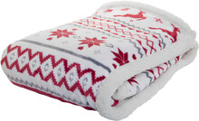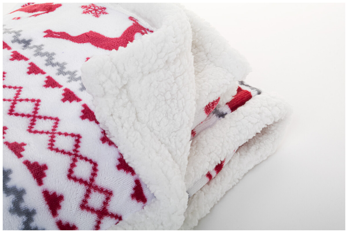 Dvouvrstvá vánoční deka ze 230 g/m2 flanelového fleecu RPET a oboustrannou podšívkou z RPET sherpa fleecu 210 g/m2. Zabalené do stuhy a potisknutelné papírové karty.