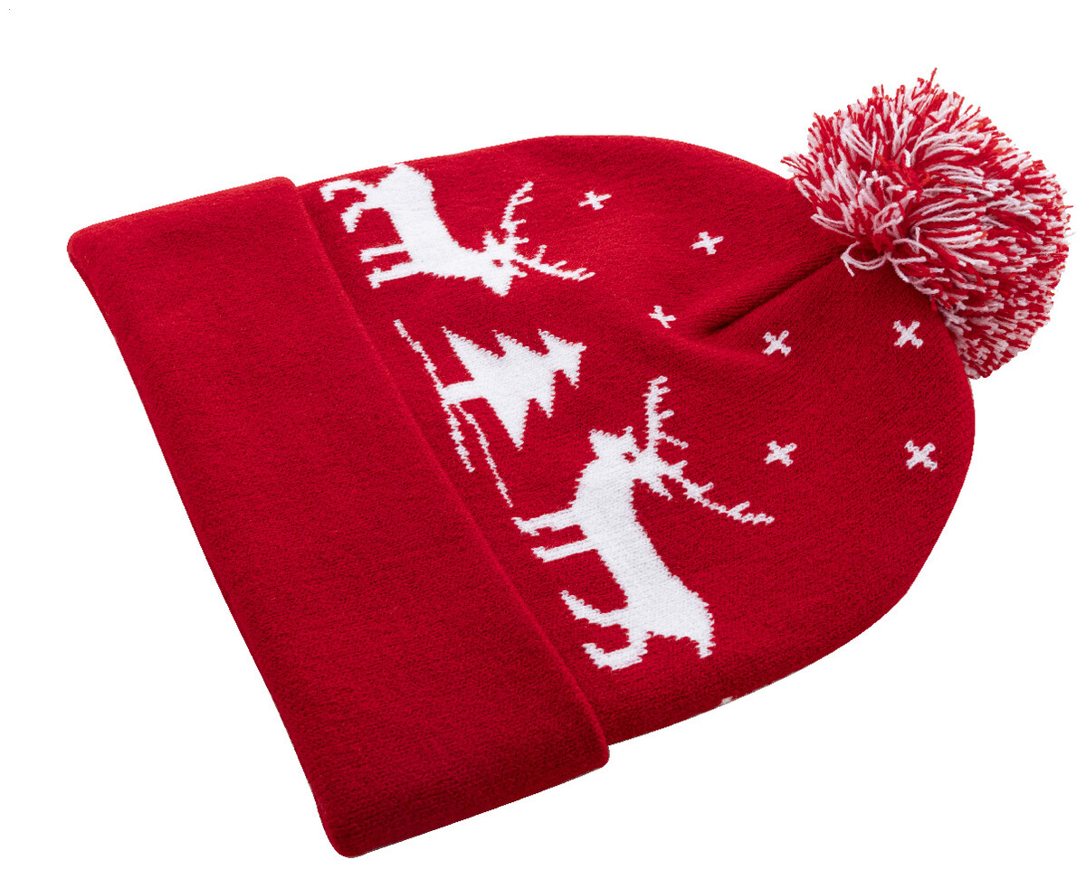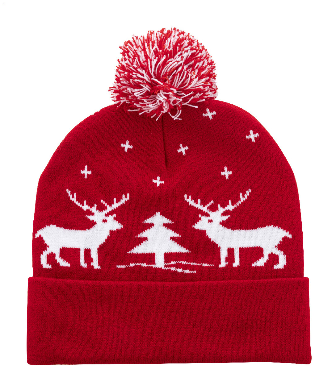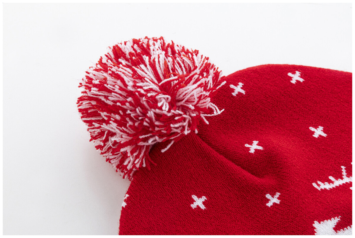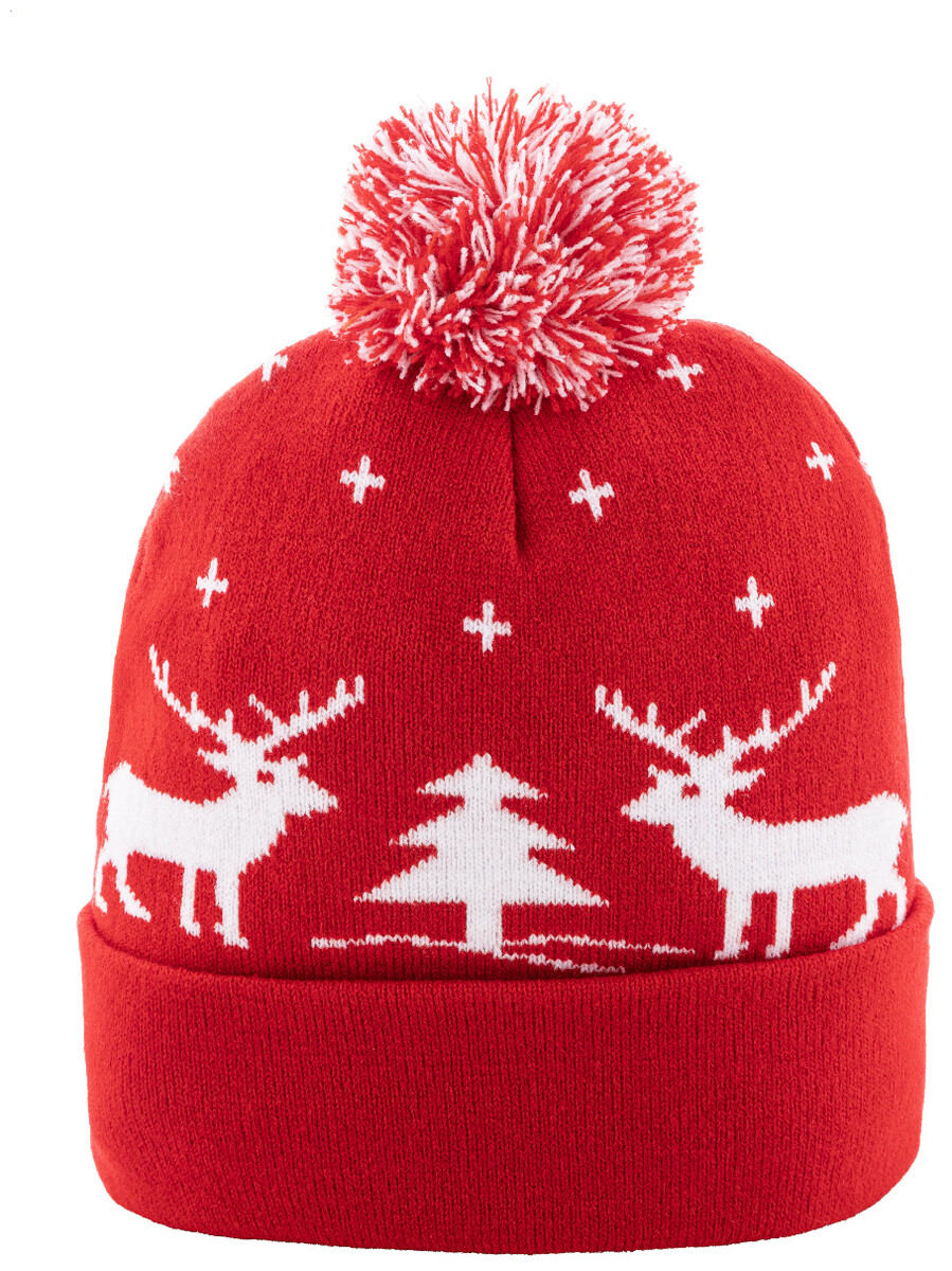 Pletená vánoční čepice z akrylu s manžetou a bambulí.