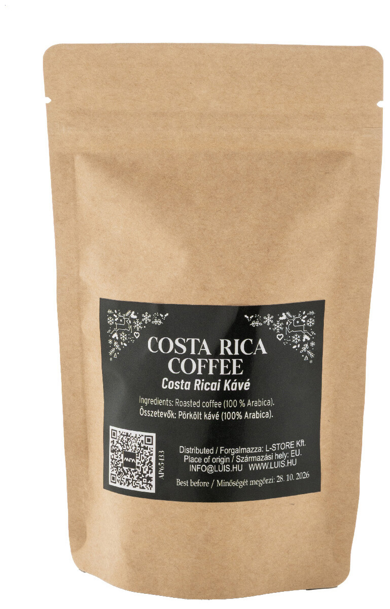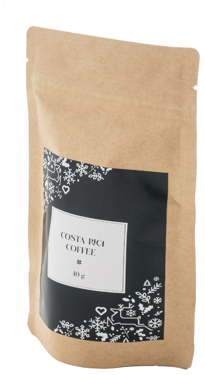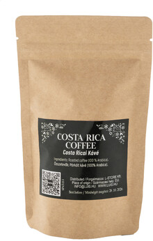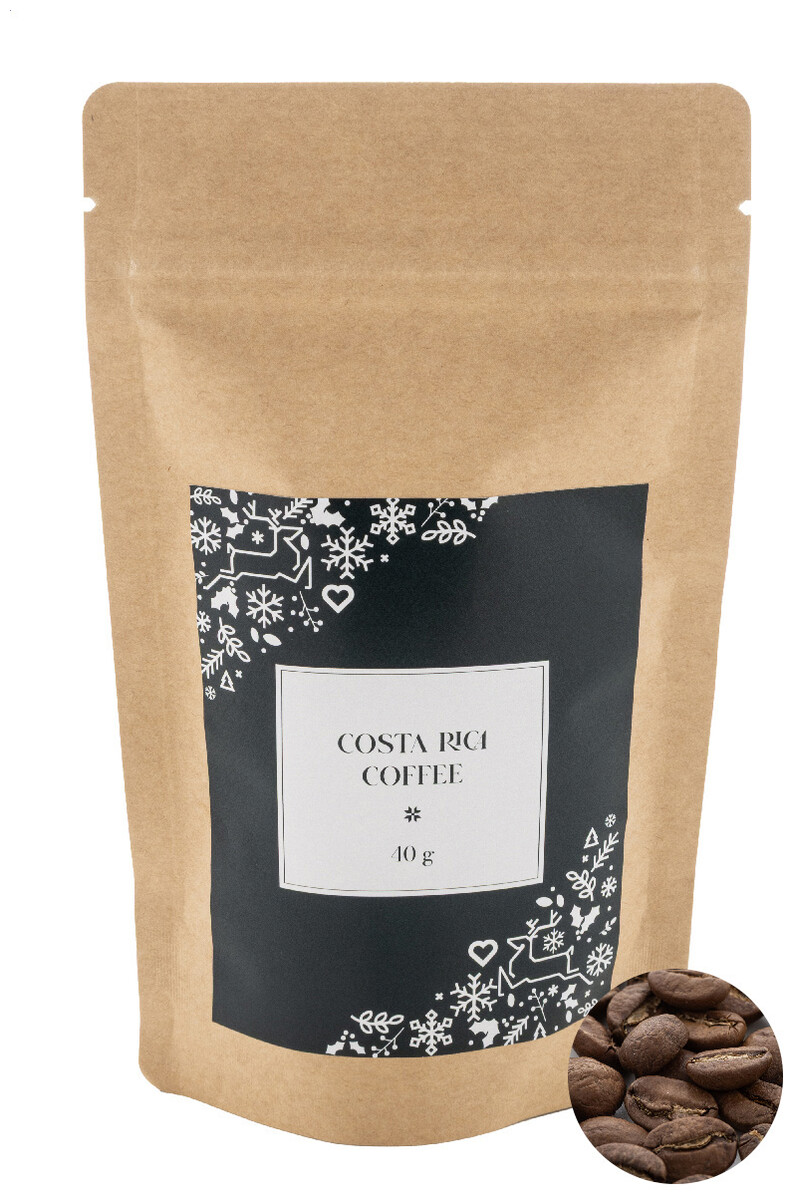 Pražená kostarická zrnková káva balená v přírodním kraftovém papírovém sáčku. 40 gramů.