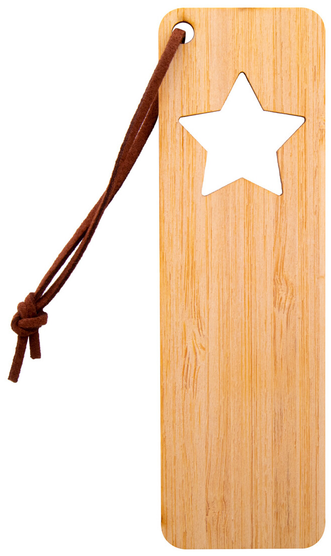 Bambusová záložka do knihy s vyřezaným vánočním motivem a poutkem z PU kůže.