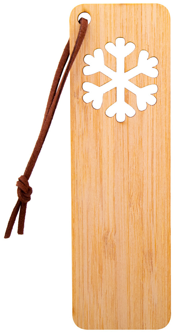 Bambusová záložka do knihy s vyřezaným vánočním motivem a poutkem z PU kůže.