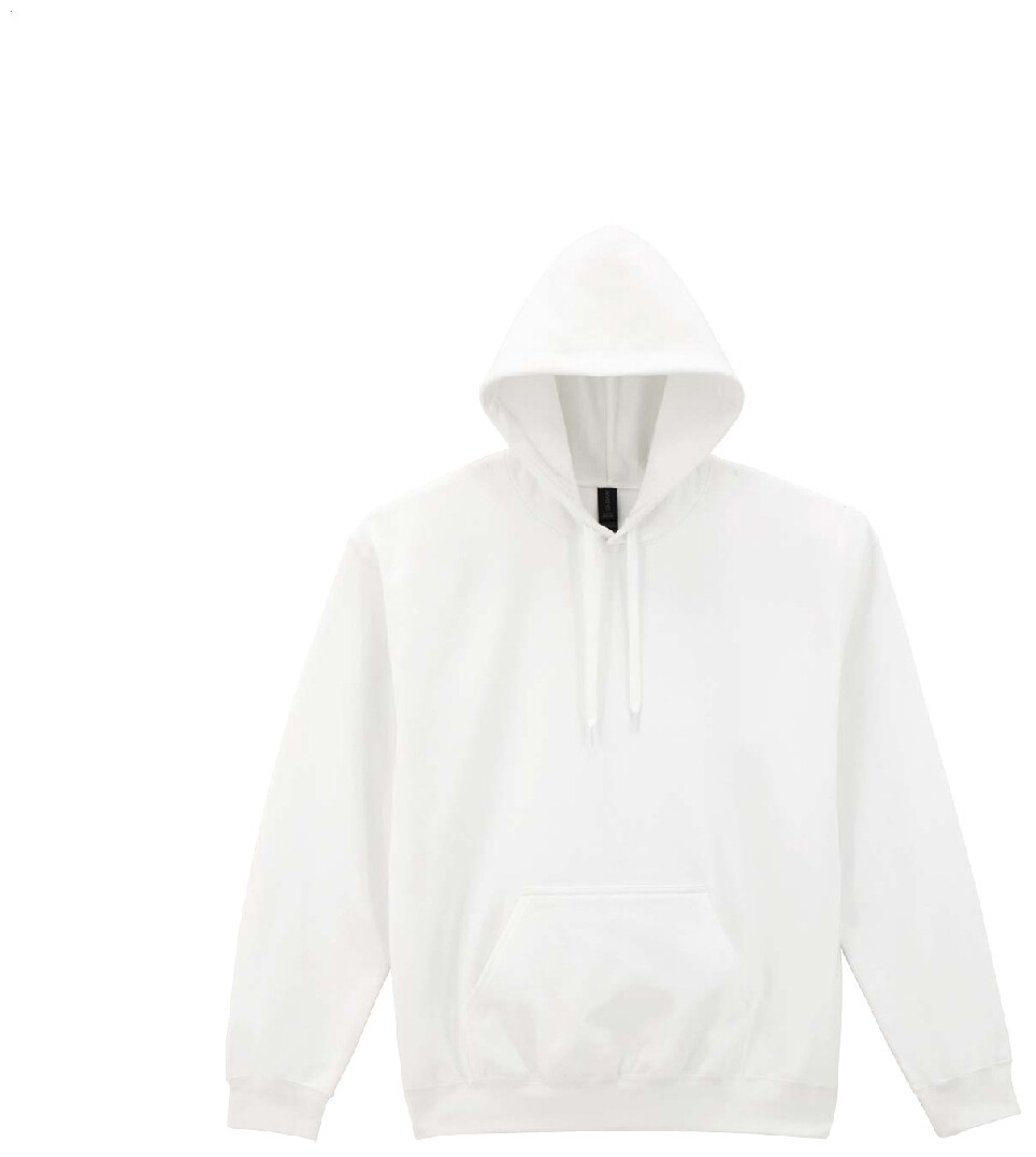 Mikina s kapucí, 80% bavlna a 20% polyester s přední kapsou. 285 g/m2 (bílá 278 g/m2). Značka Gildan.