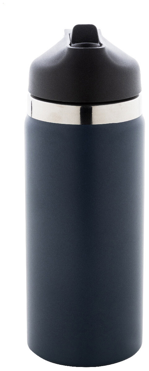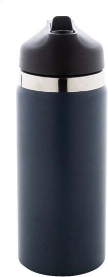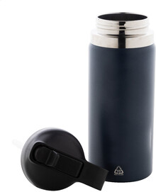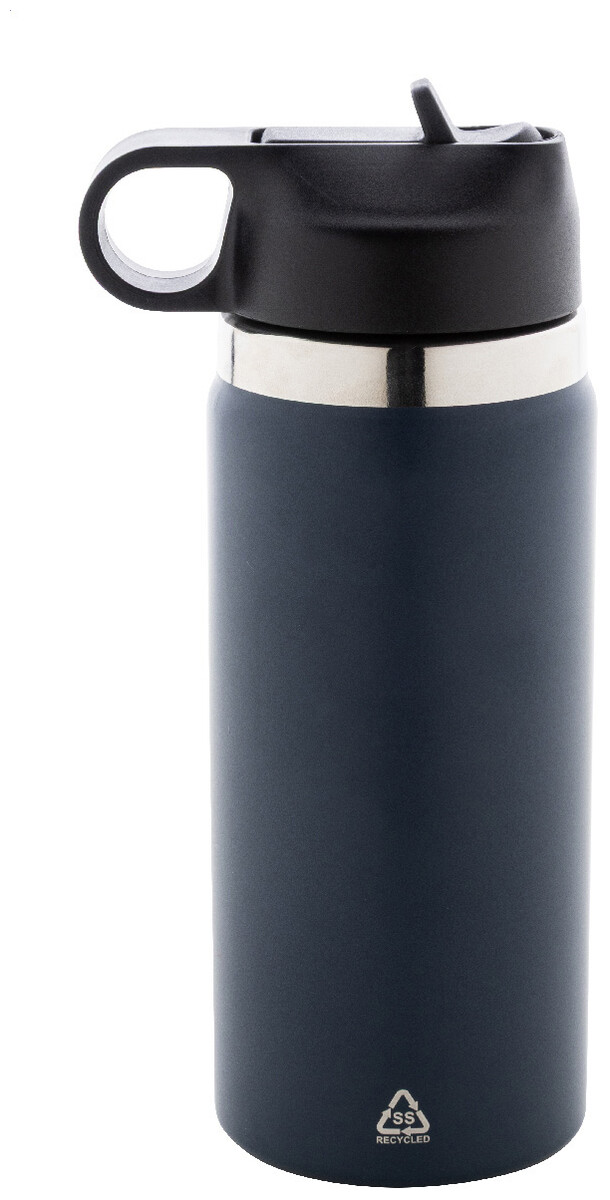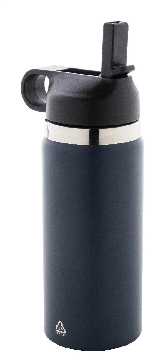 Dvoustěnná vakuová láhev z recyklované nerezové oceli s odklápěcím víčkem z PP, rukojetí a integrovaným brčkem. 500 ml.