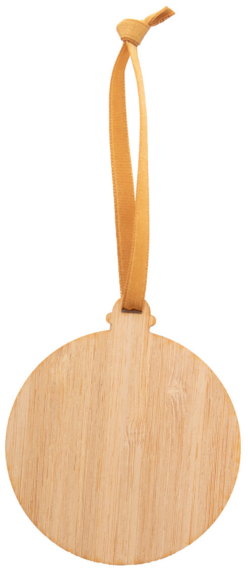 Vánoční ozdoba z bambusové překližky se zlatou stuhou. Dodáváno s oddělenou stuhou.