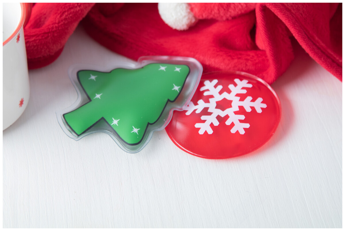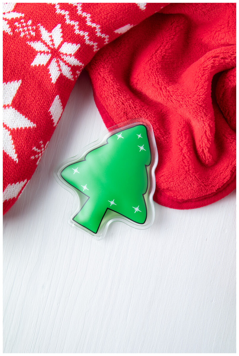 Hřejivý, opakovaně použitelný polštářek ve tvaru stromečku.
