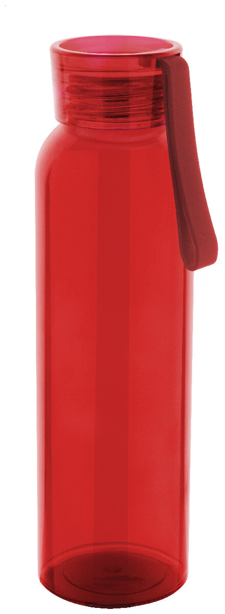 Láhev z recyklovaného skla s barevně odpovídajícím PP víčkem a silikonovým popruhem, 500 ml. Nevhodné pro sycené nápoje.