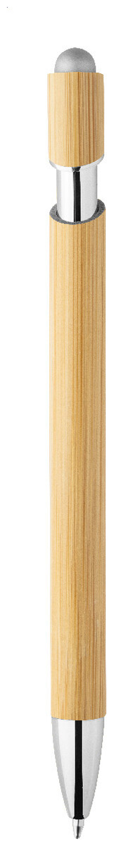 Bambusové dotykové kuličkové pero s lesklými kovovými detaily a barevným dotykovým stylusem. S modrou náplní.