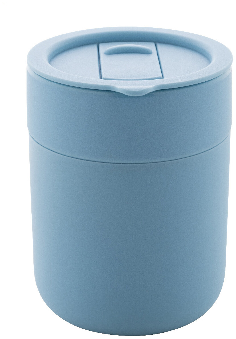 Silikonem potažený keramický cestovní kelímek s PP plastovým odkapávacím víčkem. 300 ml.