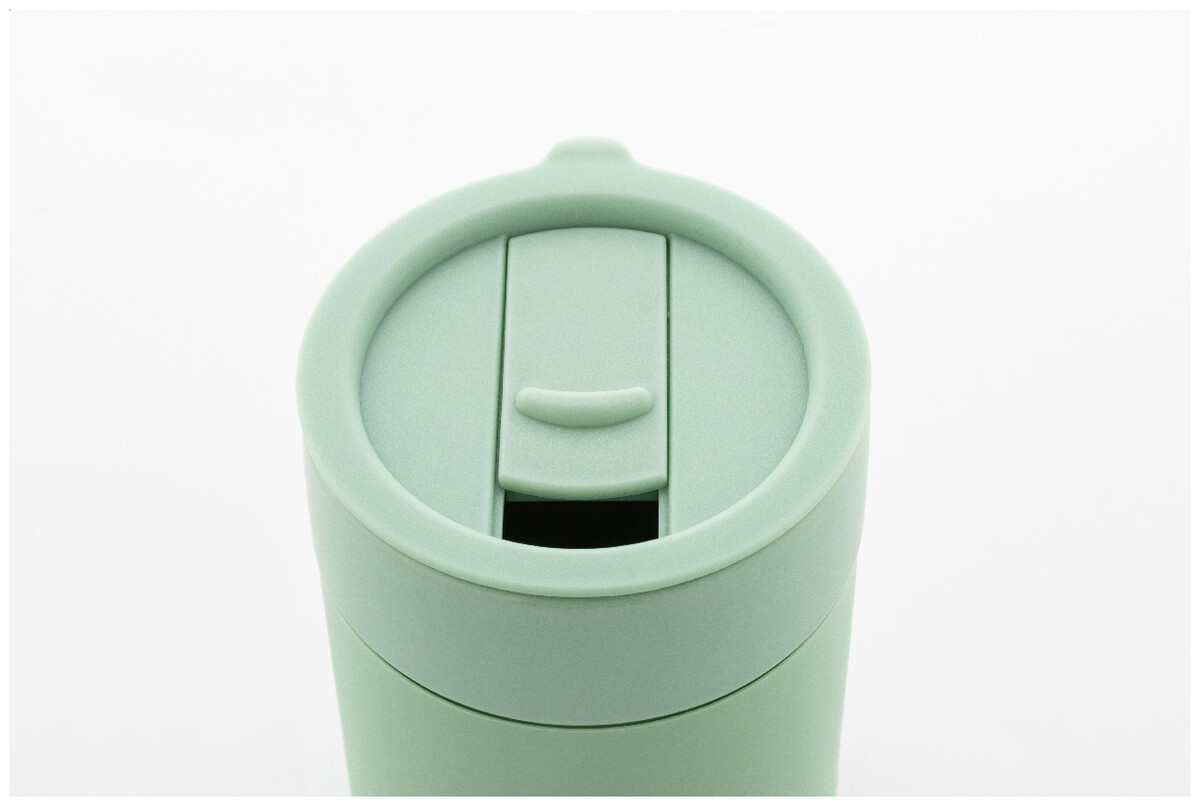 Silikonem potažený keramický cestovní kelímek s PP plastovým odkapávacím víčkem. 300 ml.