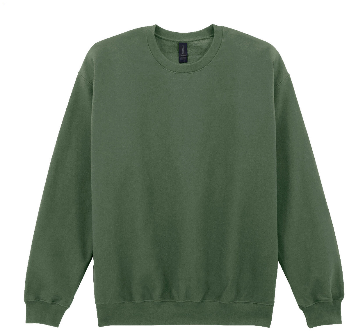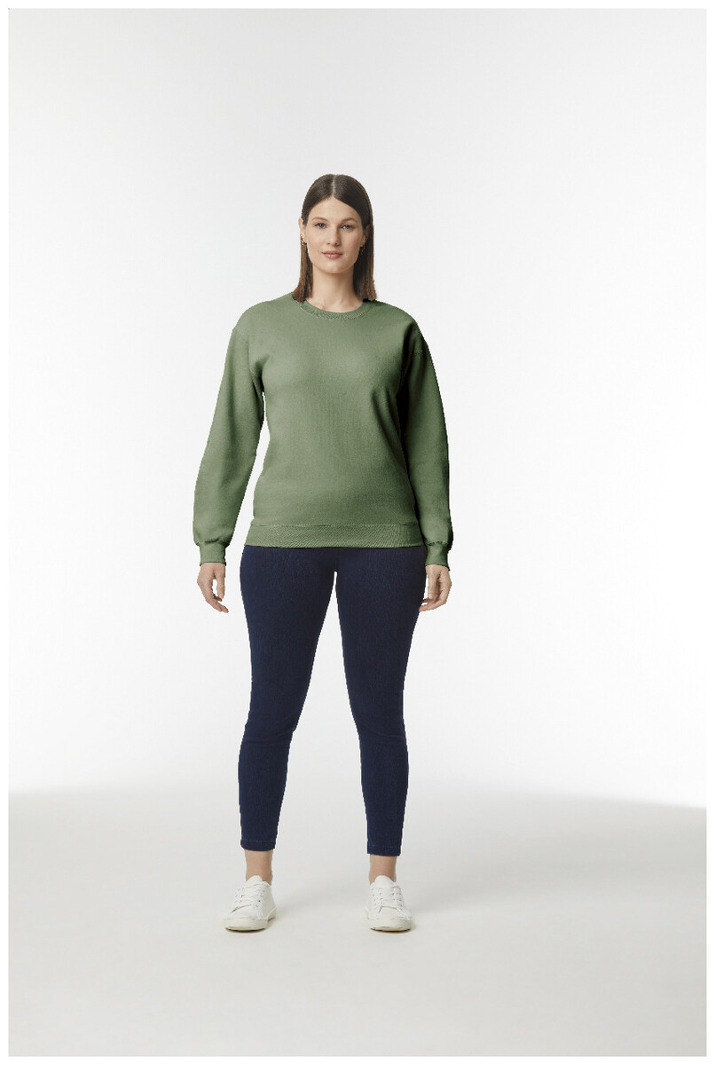 Mikina s kulatým výstřihem, 80% bavlna a 20% polyester. 285 g/m2 (bílá 278 g/m2). Značka Gildan.