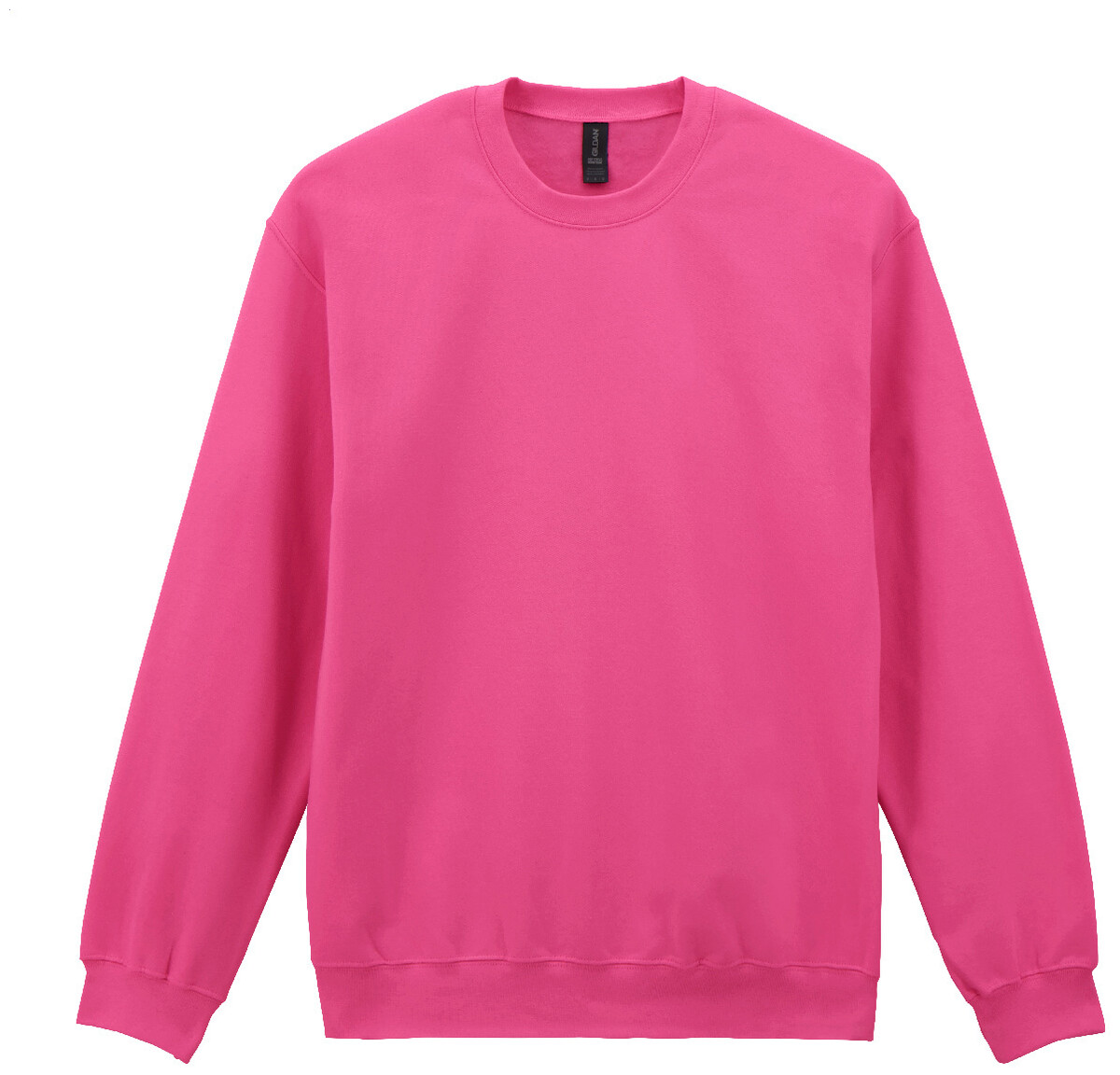 Mikina s kulatým výstřihem, 80% bavlna a 20% polyester. 285 g/m2 (bílá 278 g/m2). Značka Gildan.
