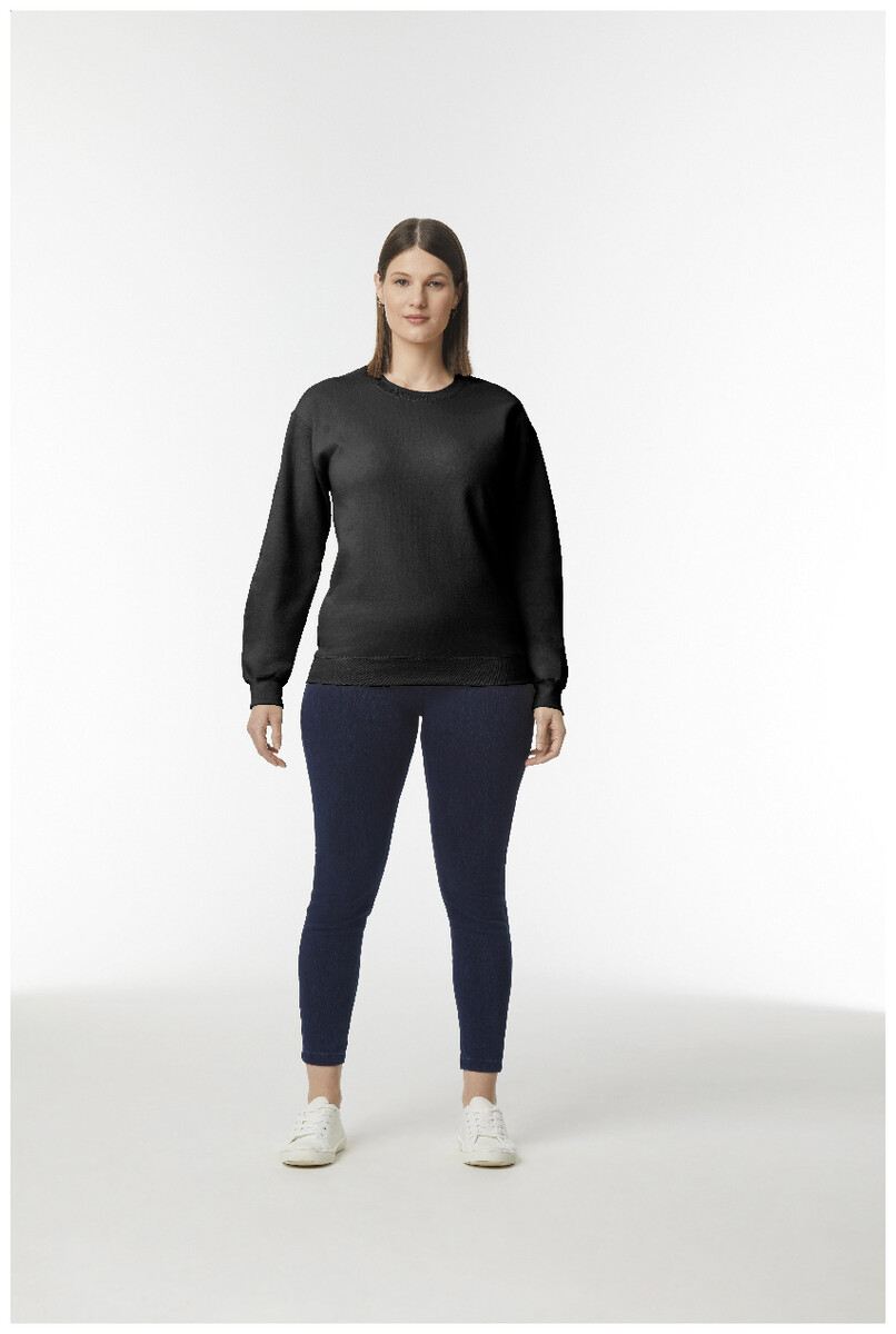 Mikina s kulatým výstřihem, 80% bavlna a 20% polyester. 285 g/m2 (bílá 278 g/m2). Značka Gildan.