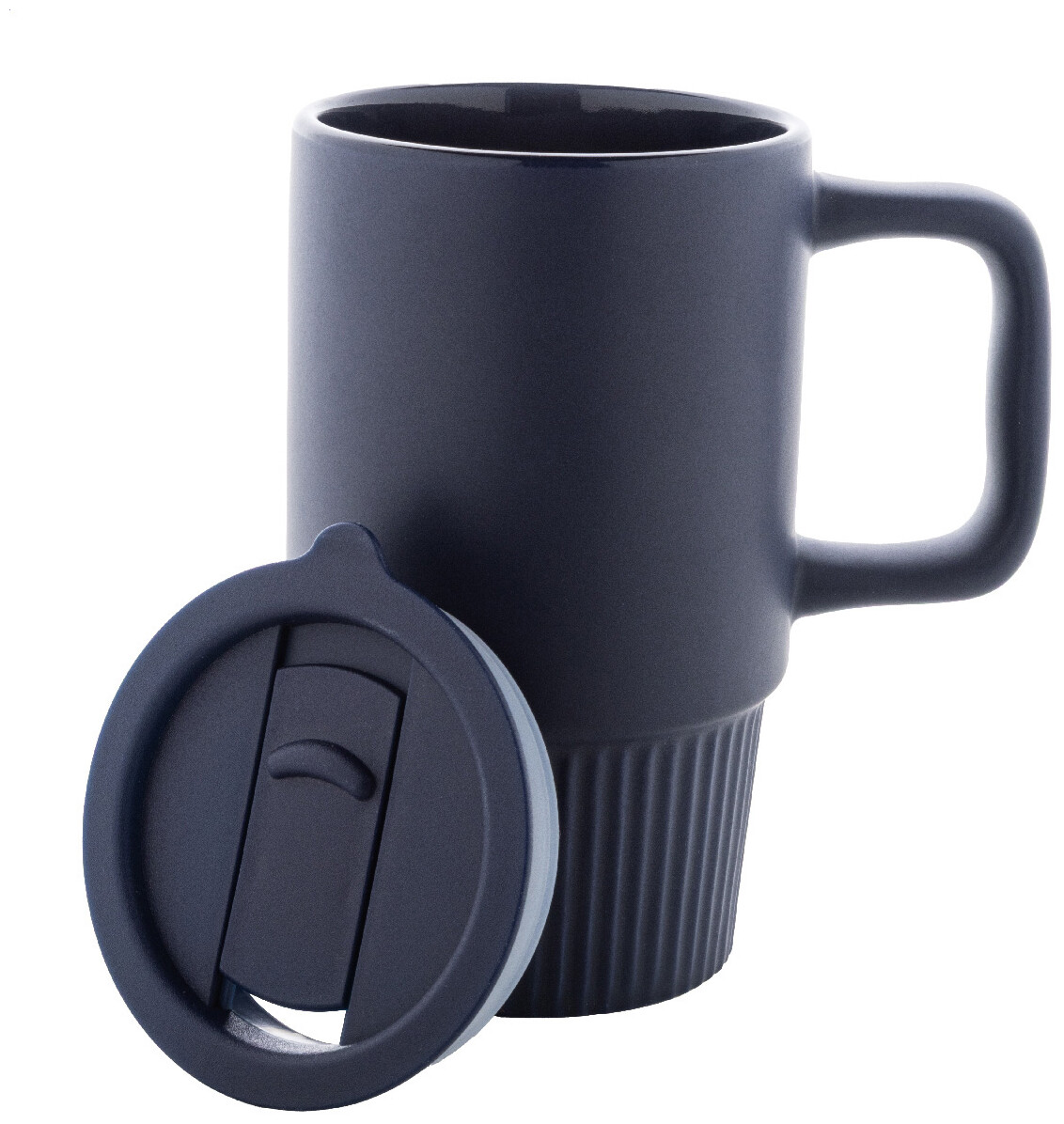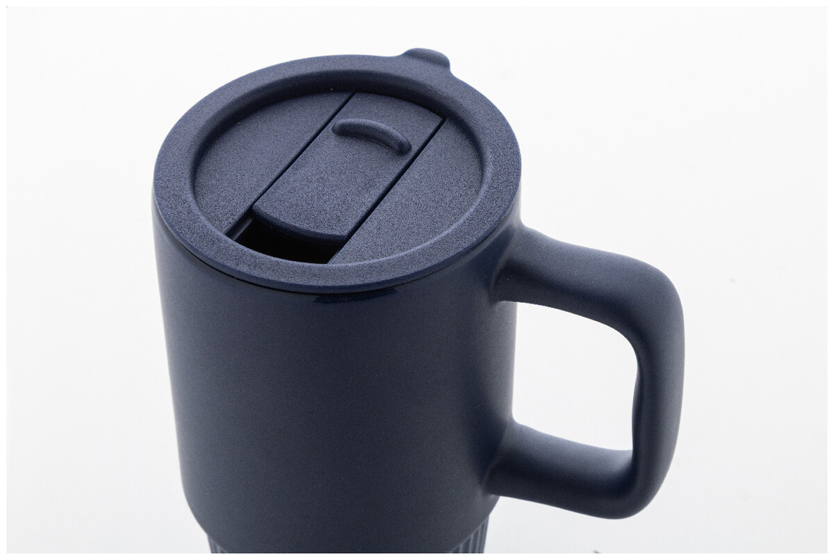 Vysoce kvalitní keramický cestovní hrnek s matným vnějším povrchem a plastovým víčkem z polypropylenu. 420 ml.