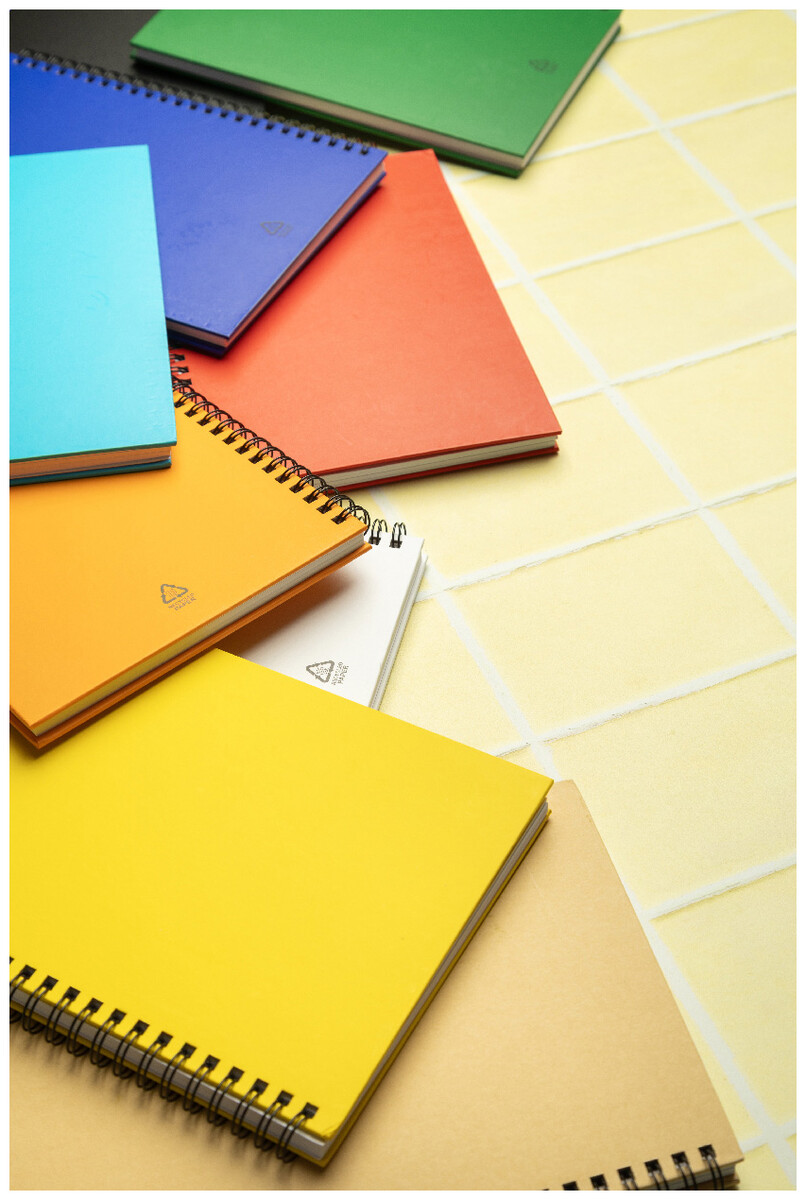 Spirálový blok A5 s 80 linkovanými listy z recyklovaného papíru.