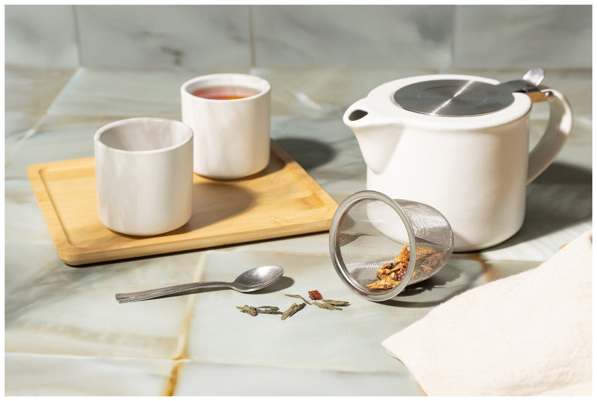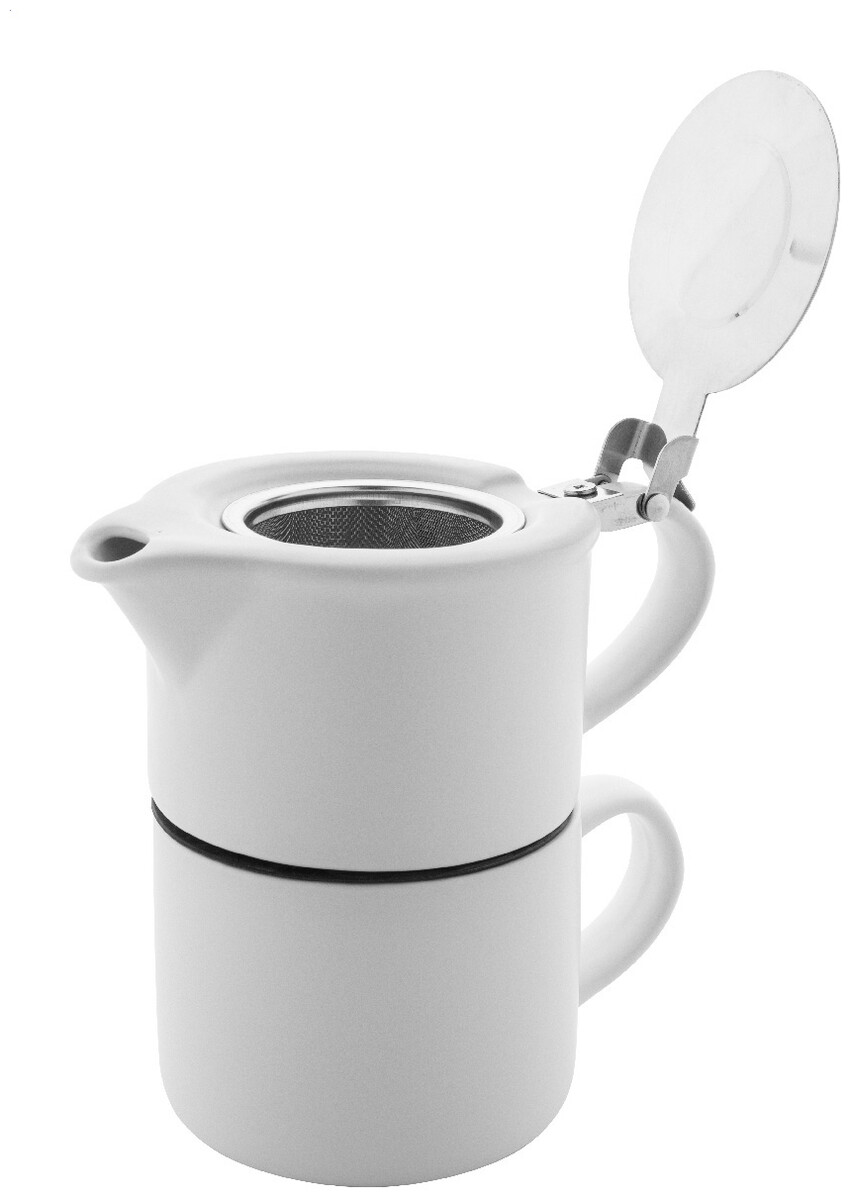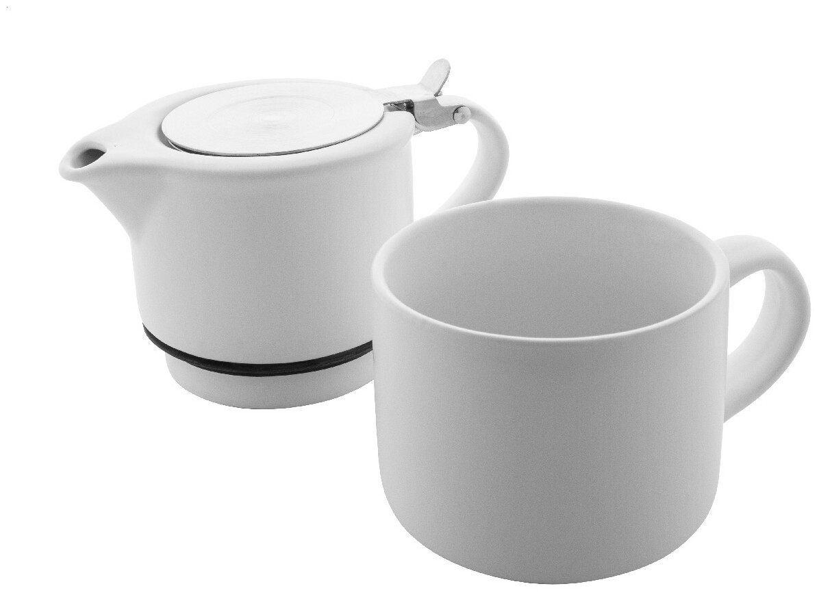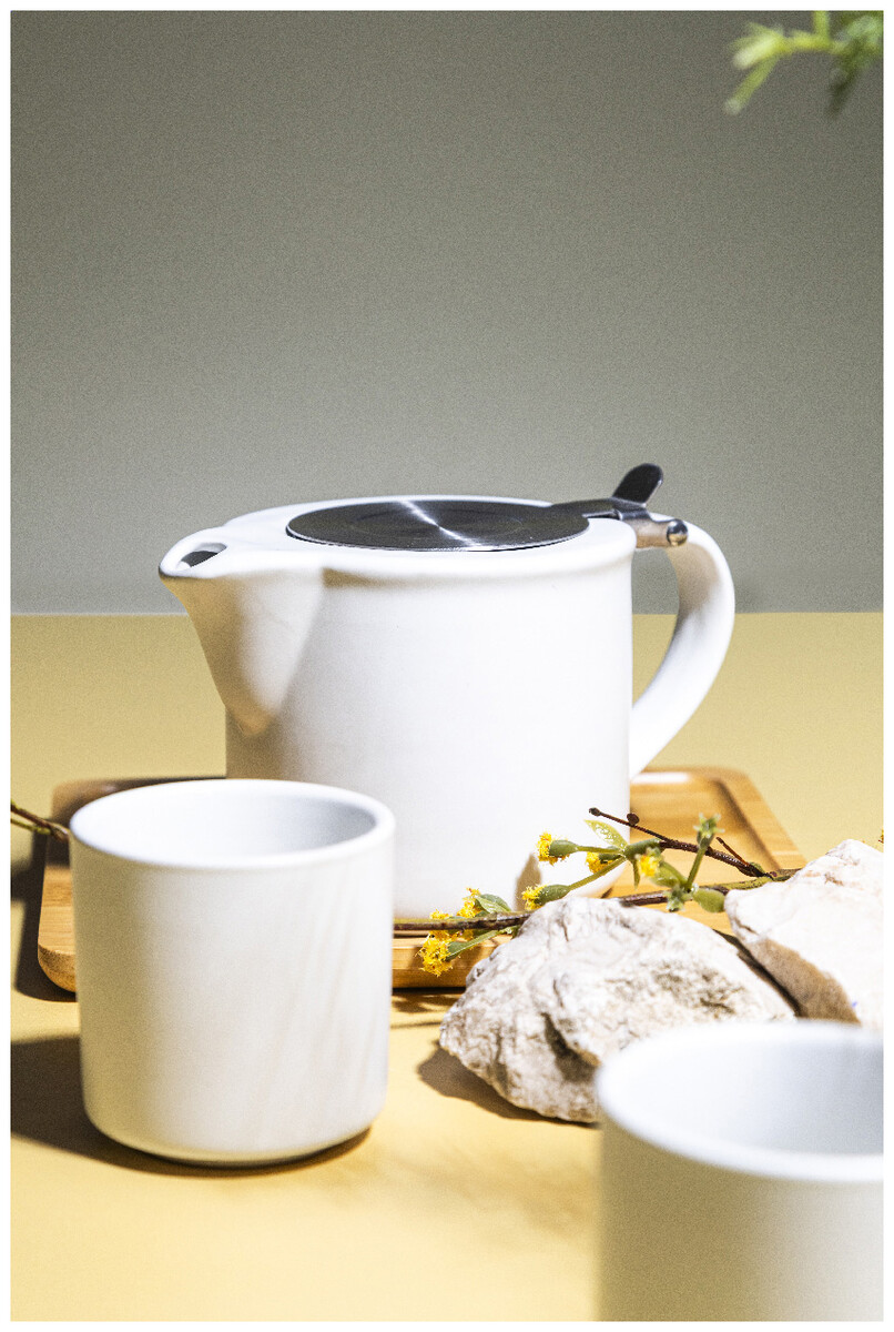 Vysoce kvalitní keramická čajová sada s matným povrchem. Včetně konvice na čaj (430 ml) s víčkem z nerezové oceli a sítkem na čaj, navržená pro úhledné stohování na odpovídající hrnek (400 ml). V krabičce z kraftového papíru.
