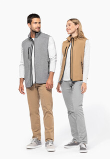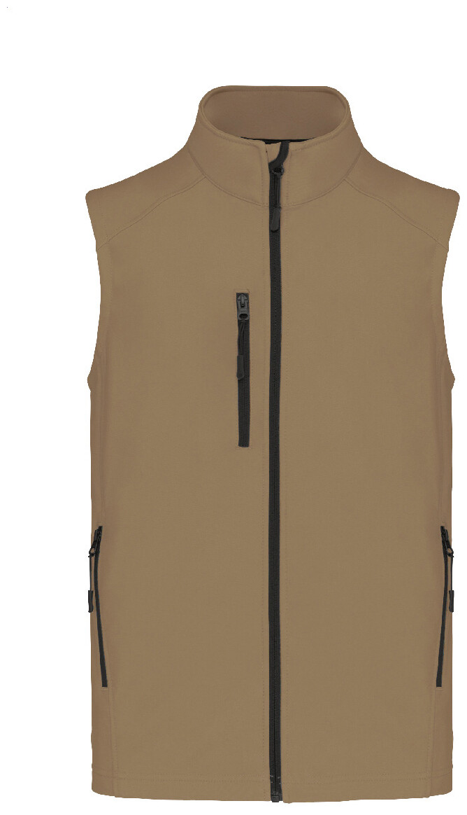 Třívrstvá, prodyšná, větru a voděodolná softshellová vesta na tělo se zipem a náprsními a bočními kapsami na zip. S prodyšnou střední vrstvou a vnitřní vrstvou z micro polar fleecu. Materiál: 95 % polyester a 5 % elastan, 300 g/m2. Výrobek značky Kariban.