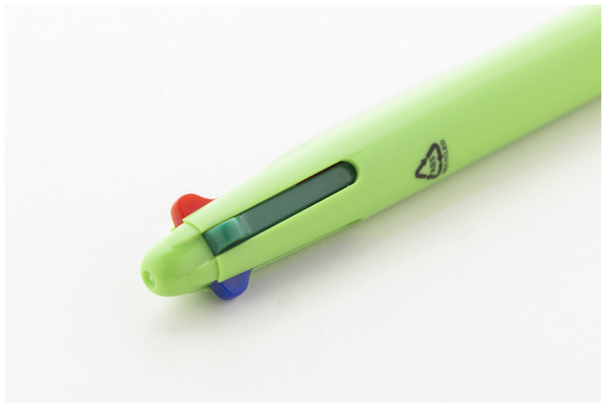 Vícebarevné kuličkové pero z recyklovaného ABS materiálu s gumovým úchopem. S černou, modrou, červenou a zelenou náplní.