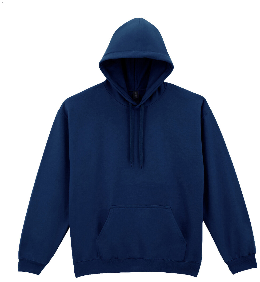 Mikina s kapucí, 80% bavlna a 20% polyester s přední kapsou. 285 g/m2 (bílá 278 g/m2). Značka Gildan.