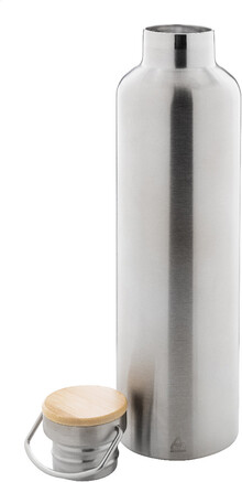 Dvoustěnná vakuově izolovaná láhev z recyklované nerezové oceli s bambusovým víčkem, 1000 ml.
