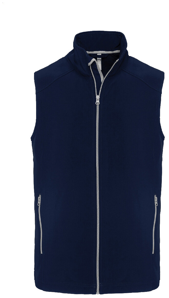 Dvouvrstvá softshellová vesta na zip s bočními kapsami na zip. S kontrastními zipy. Vodoodpudivá tkanina. Vnější strana: 95 % polyester a 5 % elastan. Vnitřní strana: 100% polyester micro polar fleece. 300 g/m2. Výrobek značky Kariban.