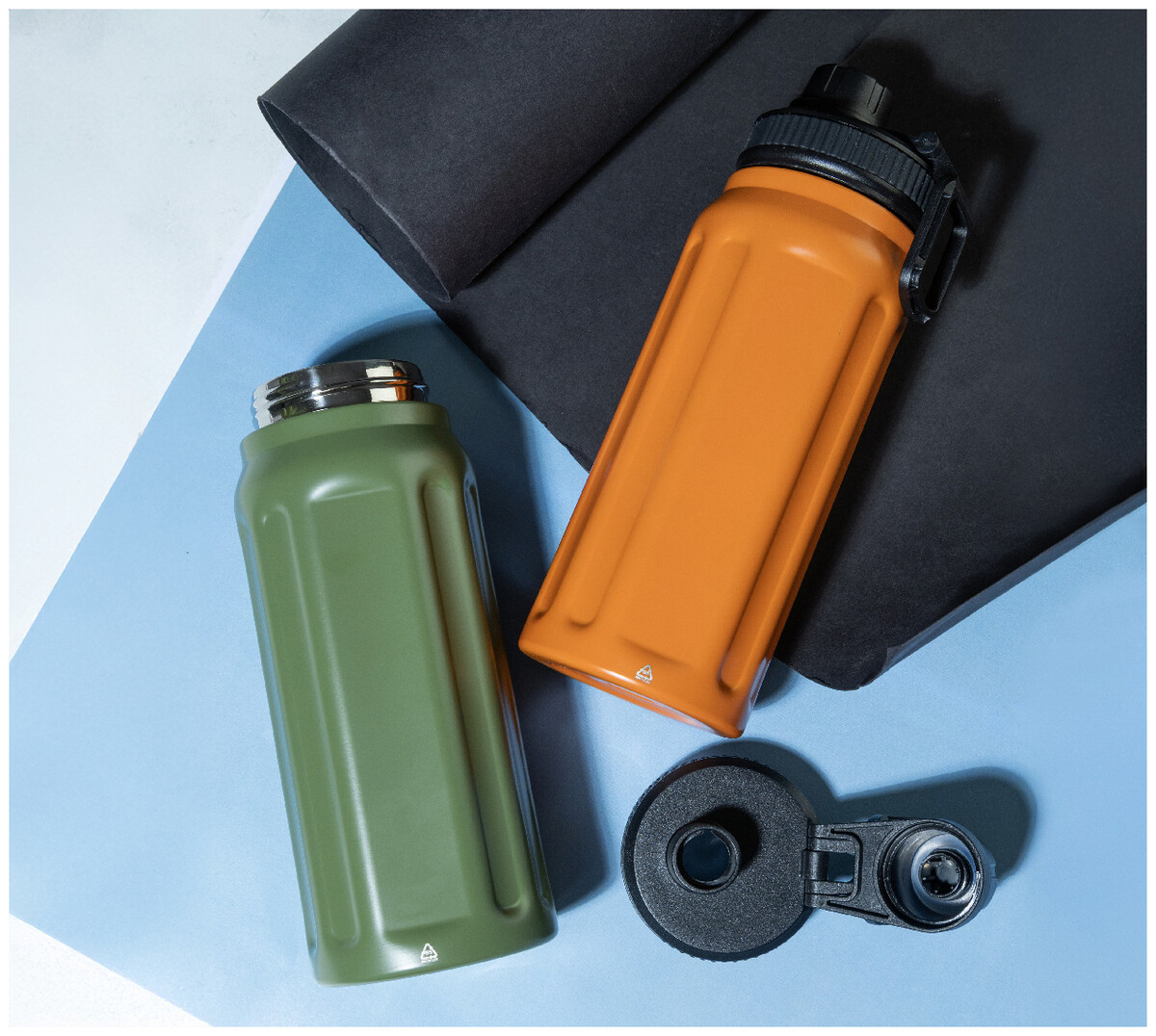 Dvoustěnná termoska z recyklované nerezové oceli s vertikálními drážkami. S víčkem z polypropylenu a s integrovaným držadlem. 540 ml.