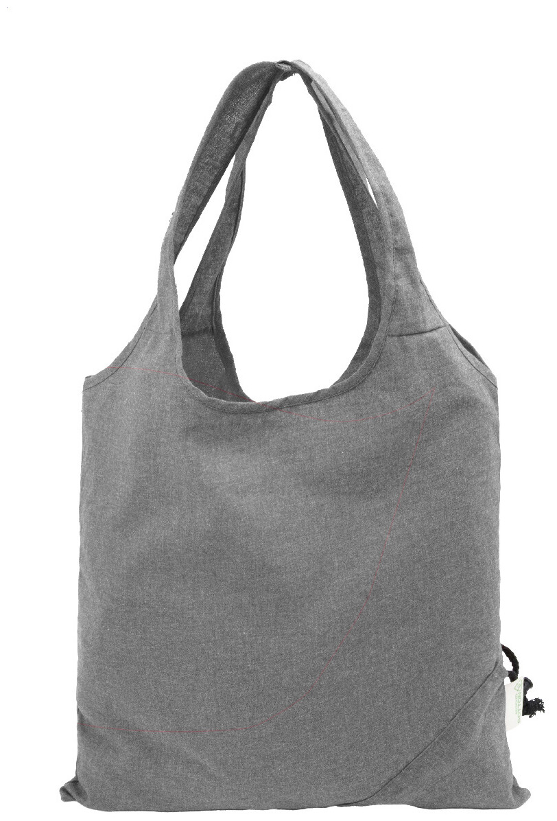 Skládací nákupní taška ze 70 % recyklované bavlny a 30 % polyesteru RPET, 140 g/m2. S výrazným štítkem z recyklované bavlny.
