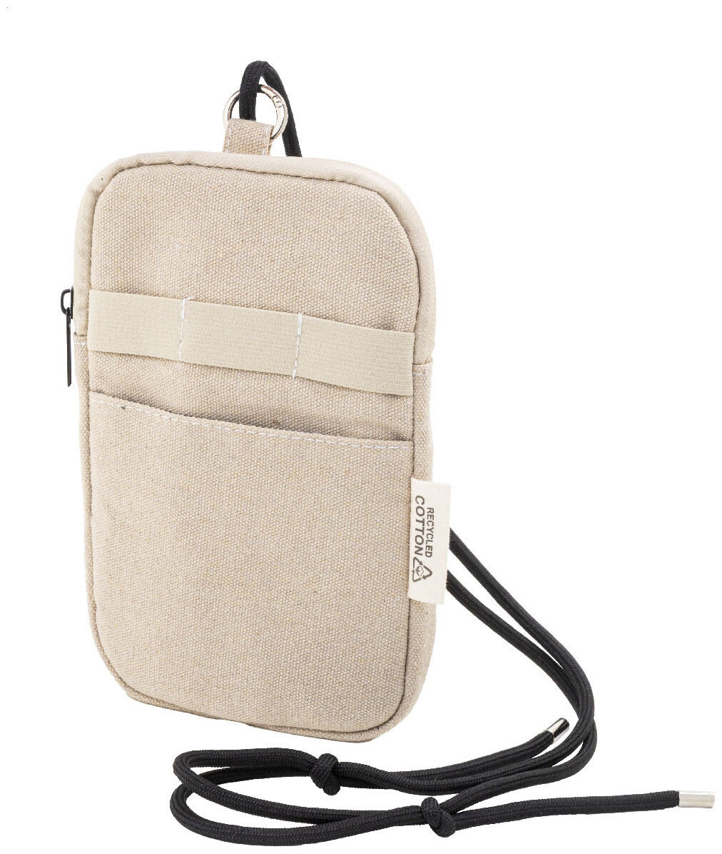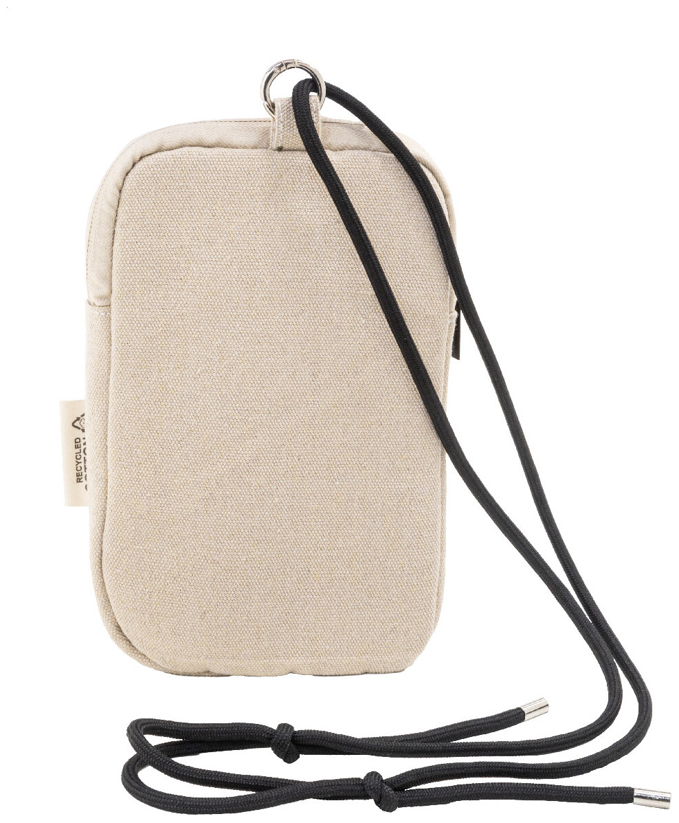 Crossbody taška na mobilní telefon z recyklovaného plátna s hlavní přihrádkou na zip, přední kapsou a nastavitelnou šňůrkou z polyesteru RPET. Materiál: 70 % recyklovaná bavlna a 30 % polyester RPET. S výrazným štítkem z recyklované bavlny.