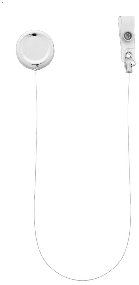 Exkluzivní kovový držák na ski pass s vysoce lesklou metalickou povrchovou úpravou. Zapínání na druk, teleskopická šňůra a kovová spona.