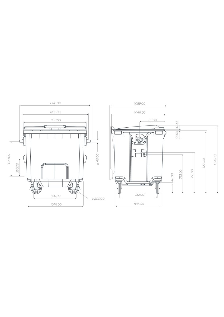 Kontejner s horním výsypem o objemu 1100 litrů je opatřen plochým víkem.