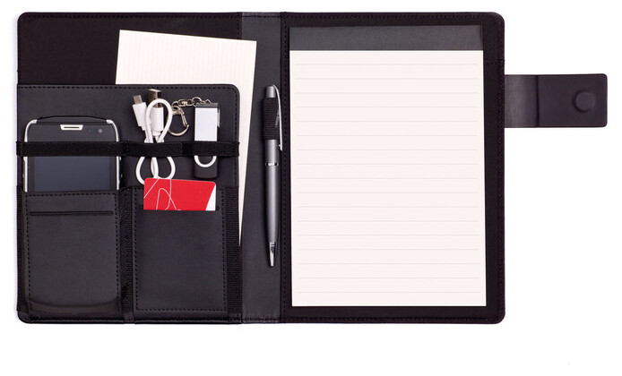 Modré designové portfolio(konferenční desky) s magnetickým zapínáním, včetně poznámkové knihy A5.