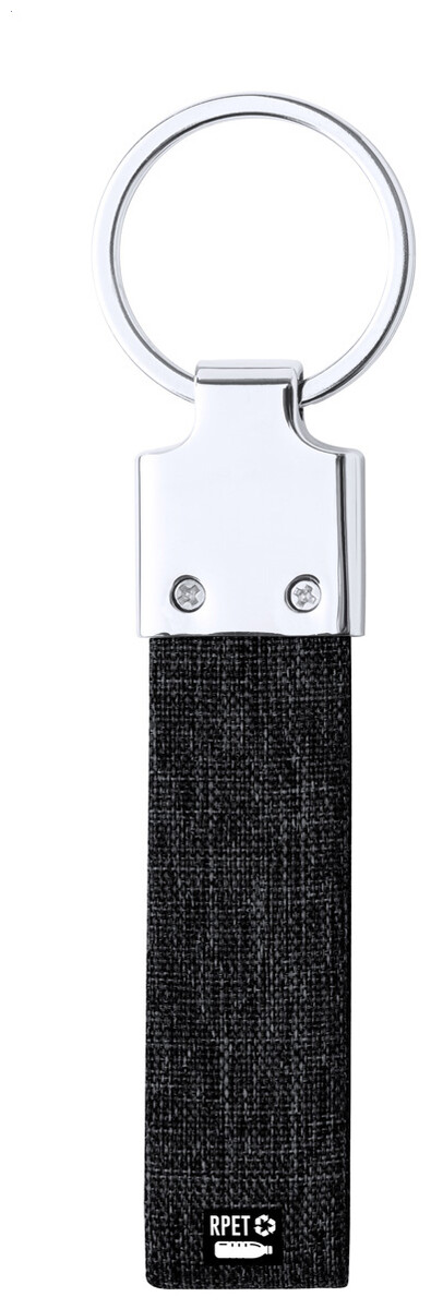 Kovový přívěsek na klíče s RPET polyesterovým páskem.