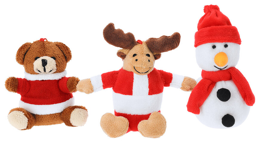Vánoční plyšová postavička z polyesteru s kovovým kroužkem na klíče.