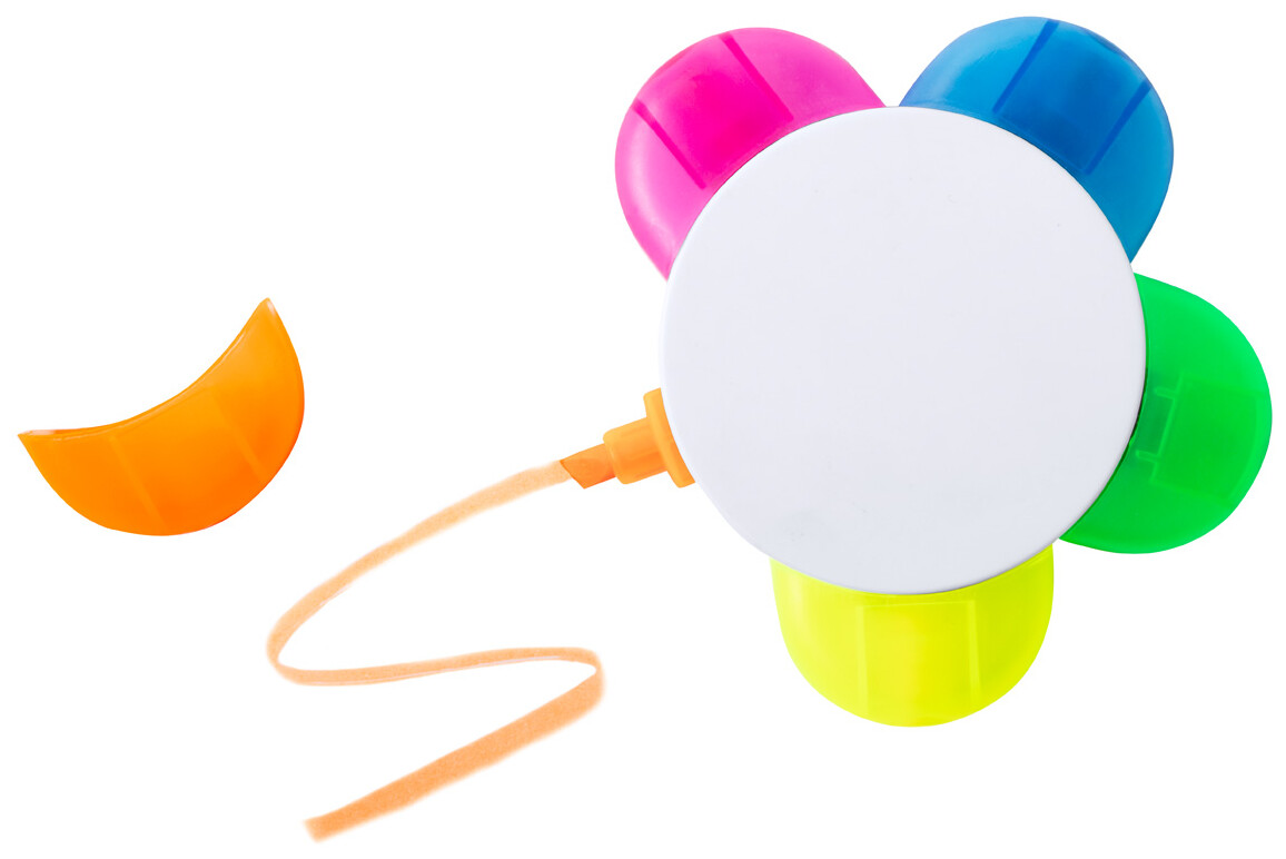 Zvýrazňovač ve tvaru květiny s 5 barvami.