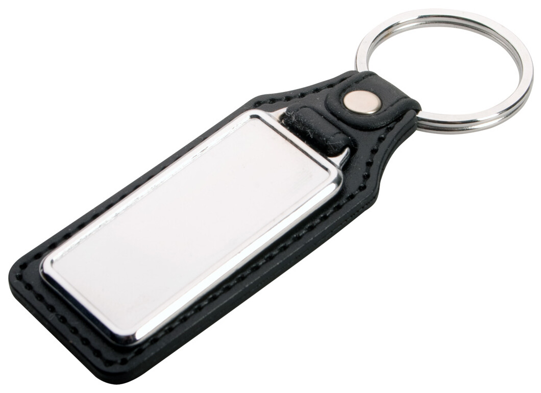 Obdélníkový přívěšek na klíče z PU kůže s kovovou plochou pro epoxy potisk. Cena zahrnuje epoxy potisk, nezahrnuje tiskovou přípravu.
