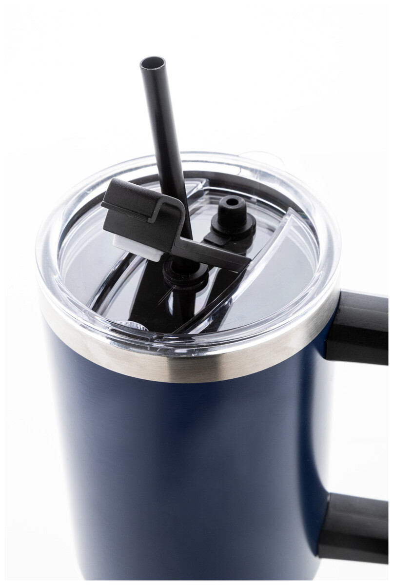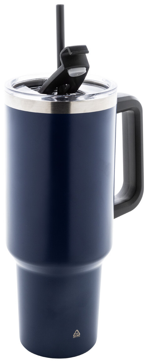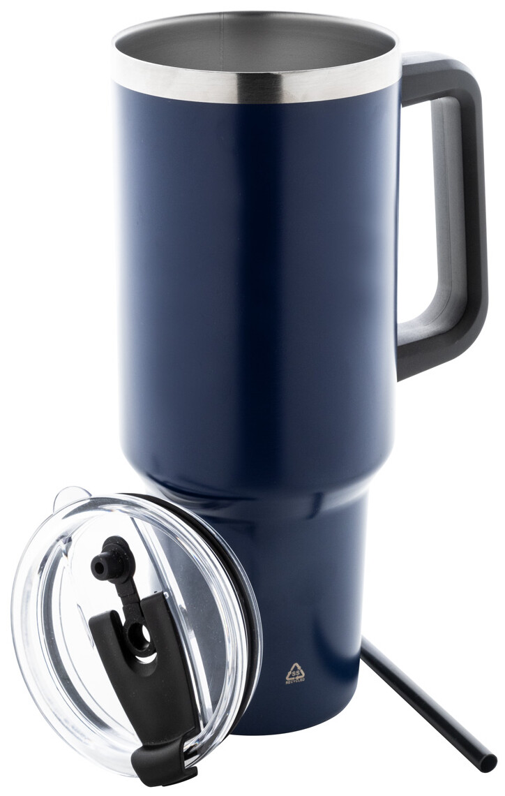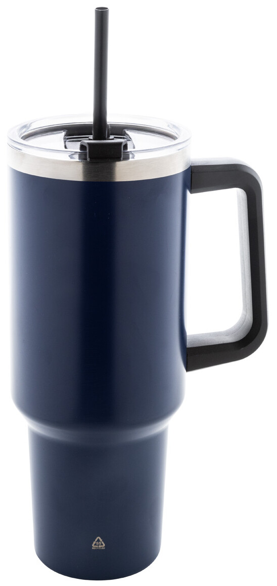 Dvouplášťový vakuově izolovaný termo hrnek z recyklované nerezové oceli s PS víčkem na pití a PP brčkem. 1200 ml.