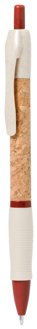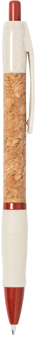Ekologické plastové kuličkové pero z pšeničné slámy s pouzdrem potaženým přírodním korkem a pryžovým úchopem. S modrou náplní.
