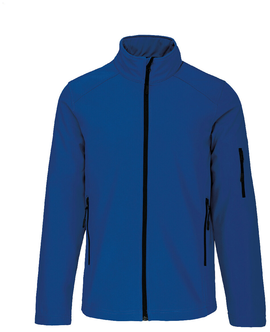 Třívrstvá, prodyšná, větru a vodě odolná softshellová bunda na zip s rukávy na zip a bočními kapsami. S prodyšnou střední vrstvou a vnitřní vrstvou z mikropolaru. Materiál: 95 % polyester a 5 % elastan, 300 g/m2. Výrobek značky Kariban.
