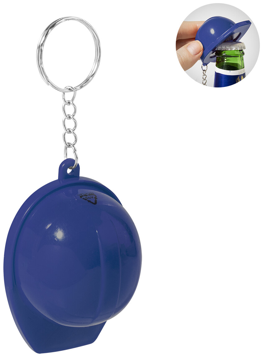Přívěsek na klíče ve tvaru bezpečnostní přilby z recyklovaného ABS materiálu s otvírákem na lahve.