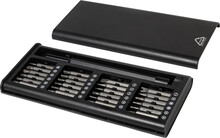 Sada přesných šroubováků s 24 bity v pouzdře z recyklovaného ABS plastu. Rukojeť šroubováku je vybavena magnetickým uchycením bitů pro rychlou a bezpečnou výměnu bitů.