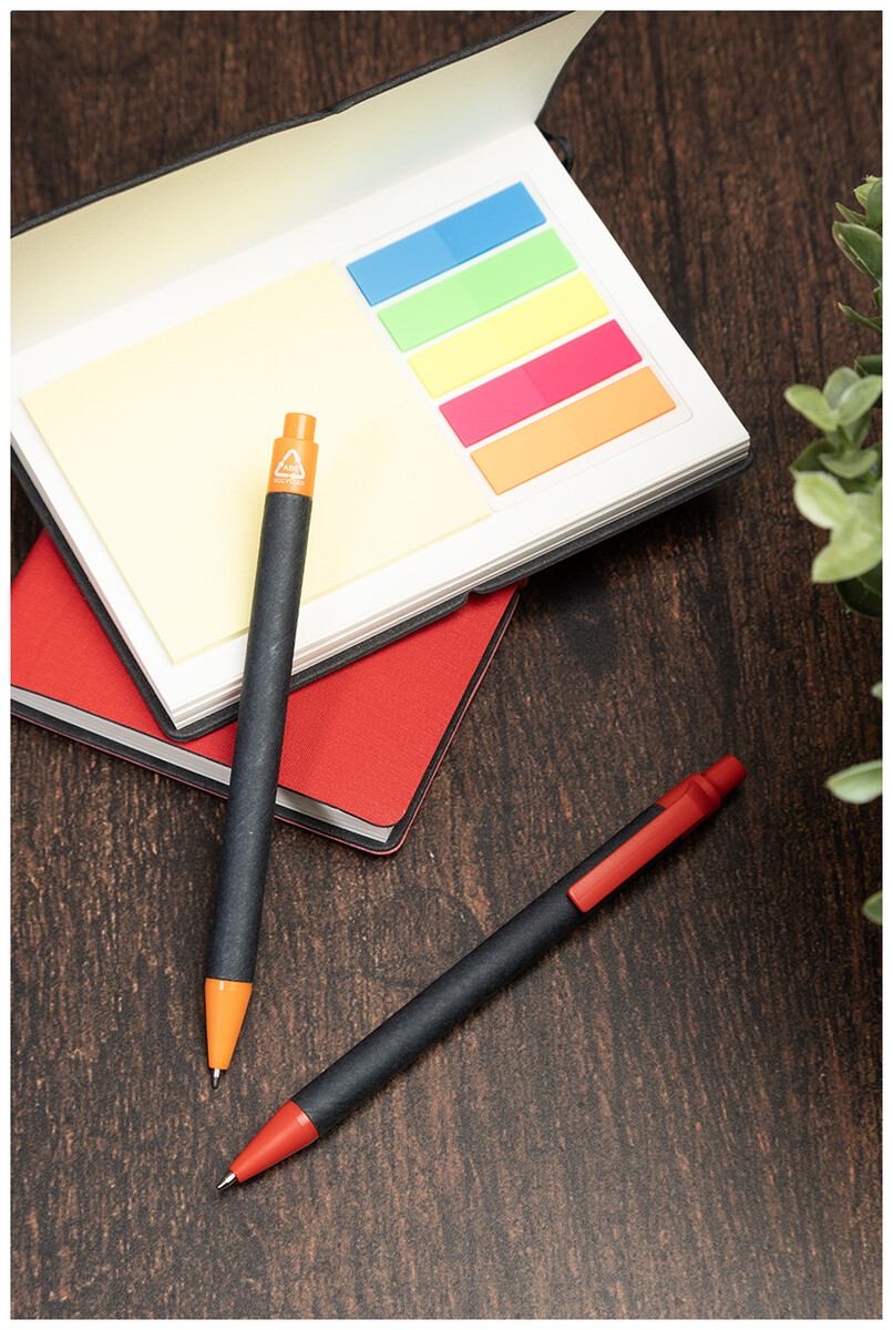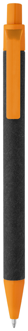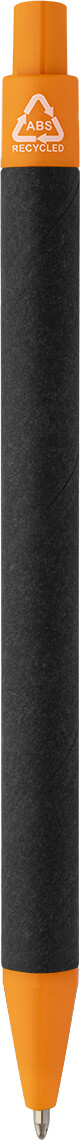 Kuličkové pero z recyklovaného papíru s černým tělem a recyklovanými ABS díly. S modrou náplní.