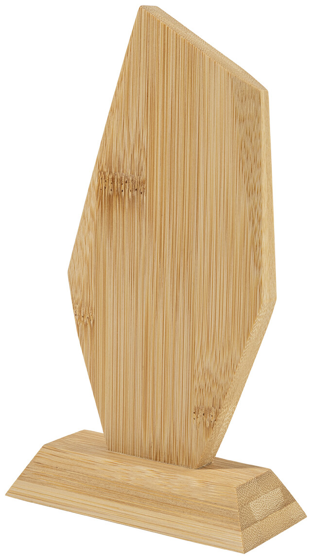 Bambusová trofej hranatého tvaru v dárkové krabičce z kraftového papíru.