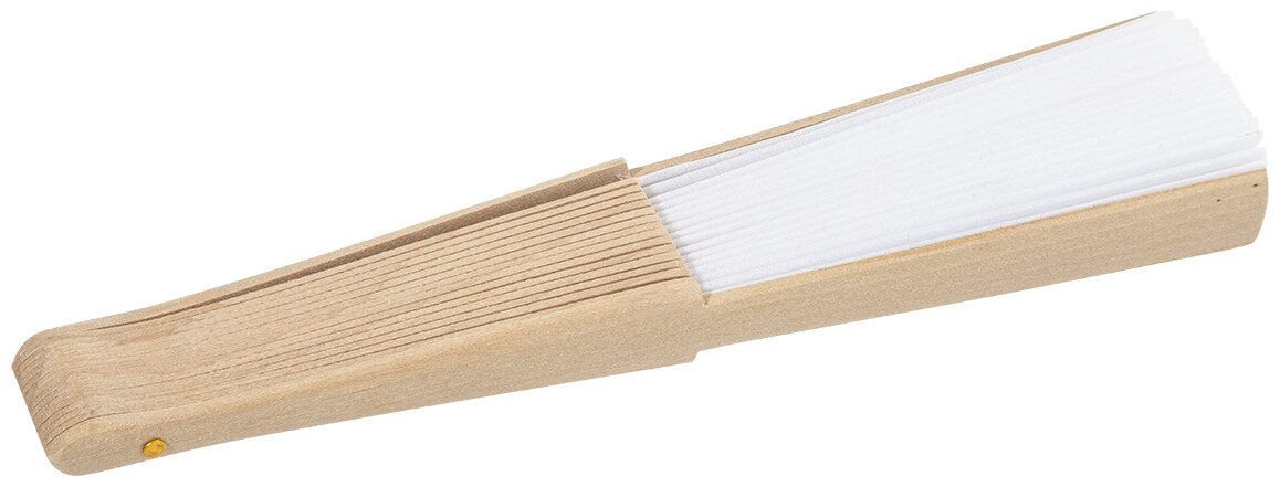 Vějíř z RPET polyesteru s dřevěnými žebry.