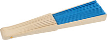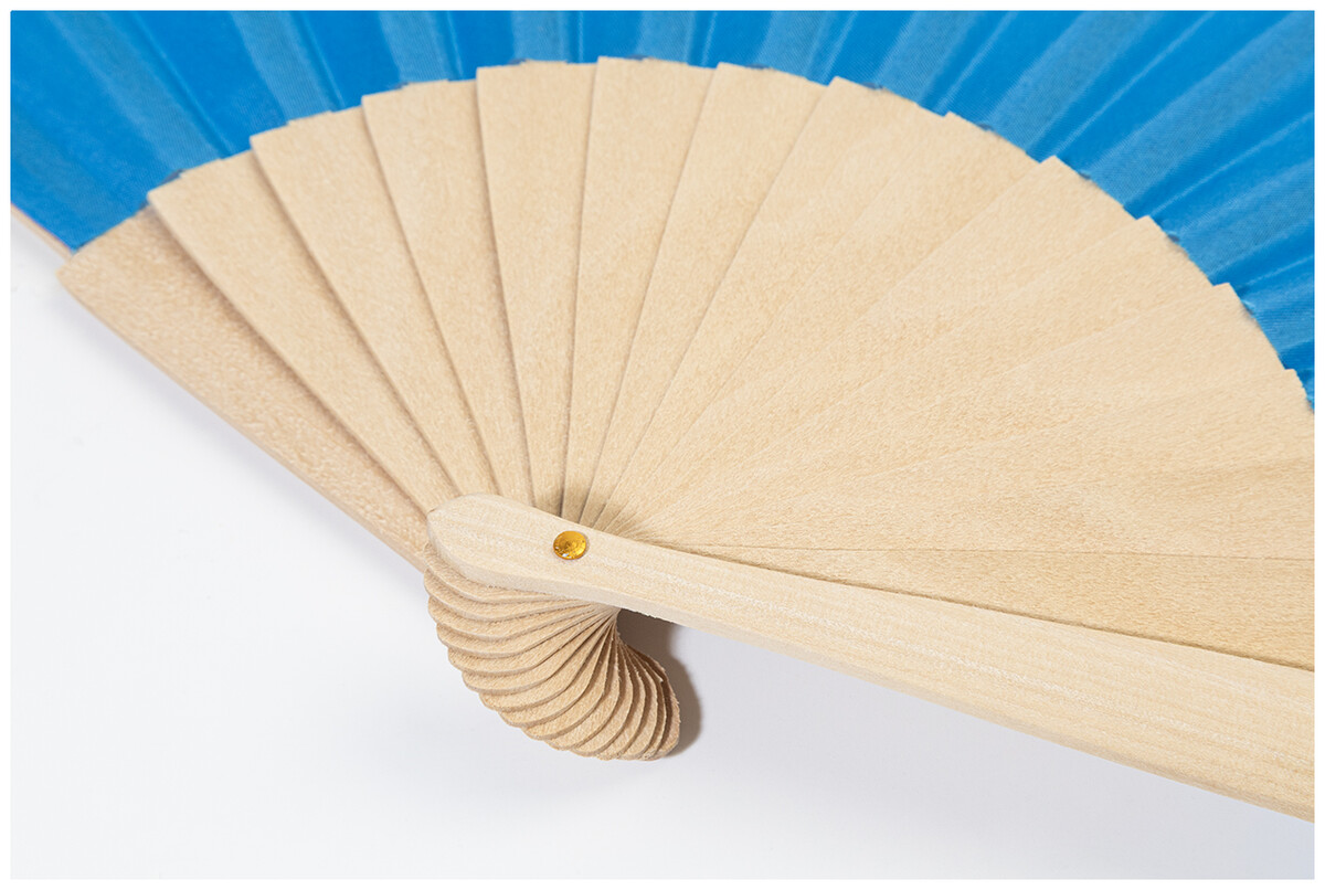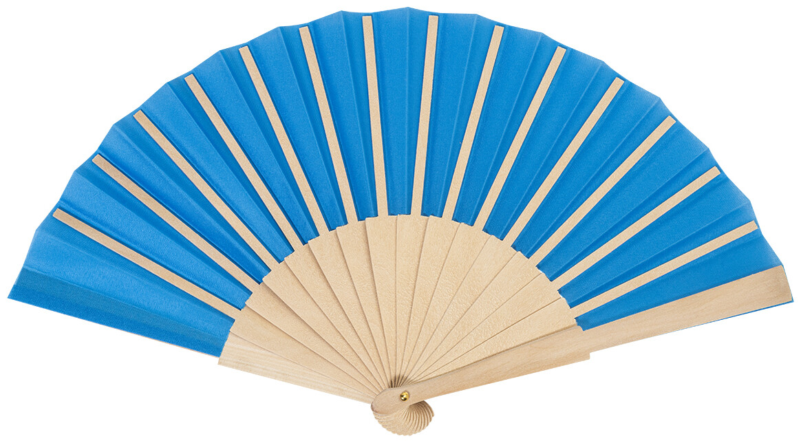 Vějíř z RPET polyesteru s dřevěnými žebry.