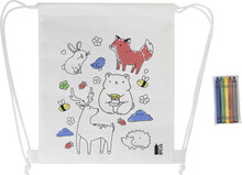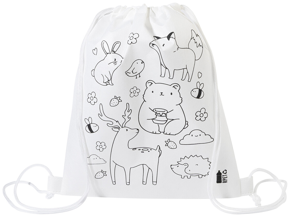 Sáček na šňůrky RPET na vybarvování, zvířata Zocolo, bílá